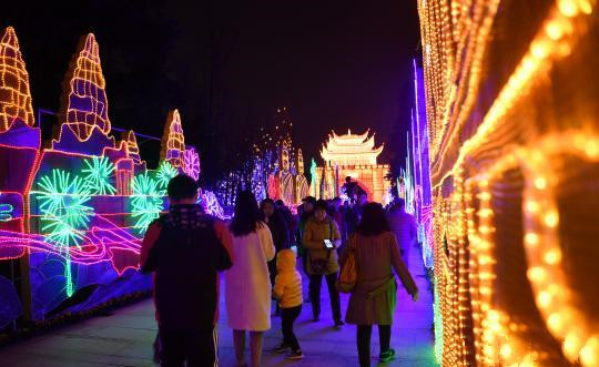 自貢燈貿(mào)集團(tuán)股份有限公司承制的“2018成都金沙太陽節(jié)”燈展于2018年2月13日晚盛大開幕。