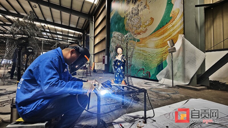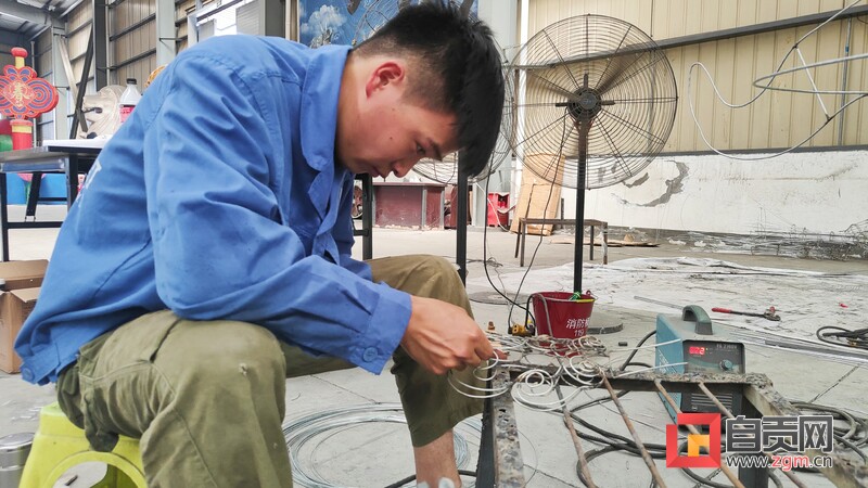8月10日下午,記者走進(jìn)自貢燈貿(mào)集團(tuán)股份有限公司生產(chǎn)車間,專訪燈貿(mào)集團(tuán)“唐風(fēng)華韻”展品項目。4名彩燈造型師就像魔術(shù)師一般,讓手中冰冷鋼絲,變成了栩栩如生的造型?!皬?月中旬以來,我們就開始進(jìn)場施工,工作時并不覺得熱,常常引來一旁同事的關(guān)心?!痹?0多度的高溫下,38歲的彩燈造型師楊勝平因為太投入創(chuàng)作,衣服濕了又穿干,還全然不知