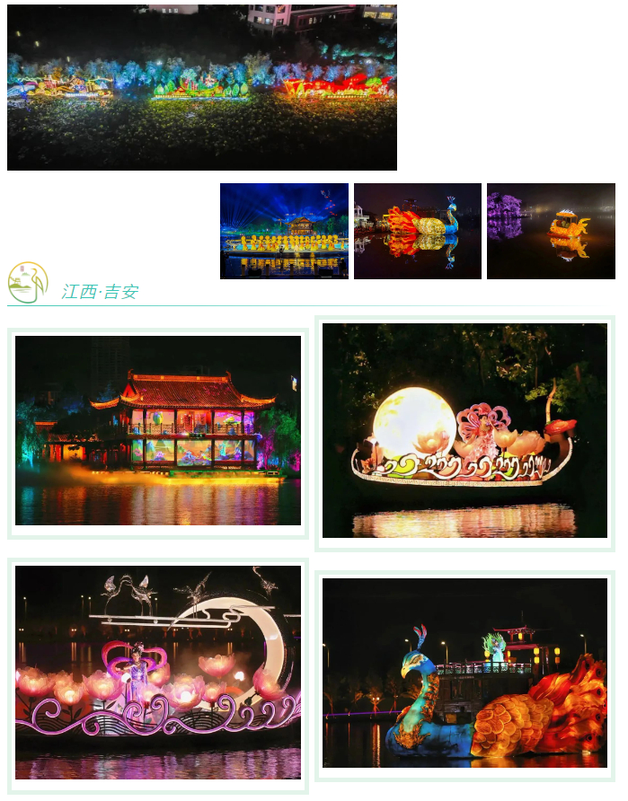 6月13日至15日,2022年江西省旅游產(chǎn)業(yè)發(fā)展大會在吉安市舉辦。自貢燈貿(mào)集團(tuán)匠心呈現(xiàn)的““后河 · 夢回廬陵””彩燈藝術(shù)盛宴,在廬陵山水間華美鋪陳,流光溢彩。彩燈用“光”解構(gòu)時間,用“影”重塑空間,演繹廬陵厚重的文化、進(jìn)取的精神,開放的胸懷,展現(xiàn)現(xiàn)代吉安奮力建設(shè)革命老區(qū)高質(zhì)量發(fā)展先行區(qū)、全省共富共享美好生活實踐區(qū)、全國紅色基因傳承示范區(qū)的豐碩成果。