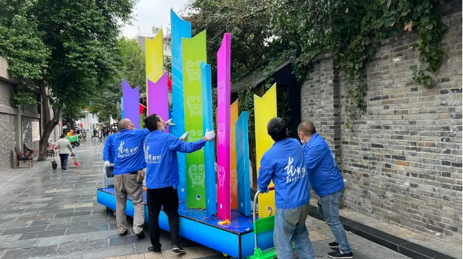 滿繪彩色圖案的金沙象牙燈組、文物造型設計燈組《嗚嚕?!?,演繹著傳統(tǒng)文化的“國潮”新風尚,彰顯著文創(chuàng)帶給這座城市的新鮮感和創(chuàng)造力。分布在寬窄巷子景區(qū)燈組,讓游客一腳踏入光影幻境中的古蜀王國。
