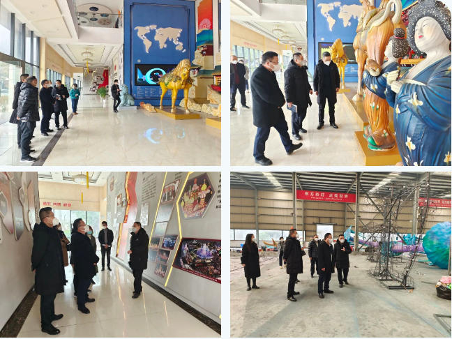 立法調(diào)研組一行人在集團(tuán)執(zhí)行總裁陶建軍陪同下首先參觀了集團(tuán)公司大廳展陳精品燈組“唐風(fēng)華韻”。隨后來到東方彩燈出口基地生產(chǎn)車間,第29屆自貢國際恐龍燈會(huì)燈貿(mào)集團(tuán)承制燈組的制作現(xiàn)場,詳細(xì)了解了本屆燈會(huì)燈組制作的相關(guān)情況。